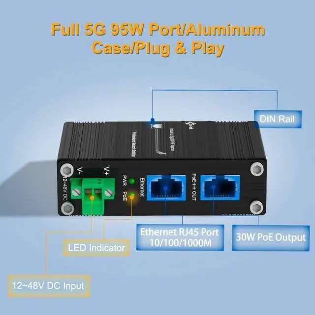 [ ++ ]: Compliant with IEEE802.3bt, it reliably supplies up to 95W to devices, ensuring seamless data transmission. Compatible with many PoE++ devices via one cable, simplifying wiring and avoiding delays.