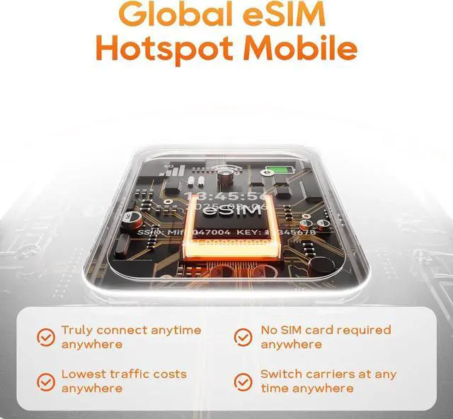 eSIM Technology for Hassle-Free ConnectivitySay goodbye to physical SIM cards with the Linklan mobile hotspot, featuring GSMA-compliant eSIM technology. Easily activate local data plans through the app in just 5 minutes, with no physical SIM required. Enjoy automatic connection to local networks for seamless and efficient global roaming. With peak speeds up to 433Mbps, it offers fast and reliable connectivity for all your travel needs.