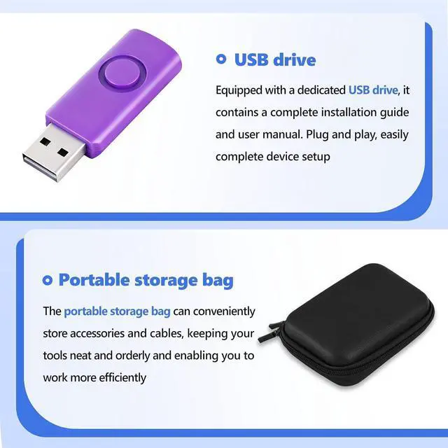 Plug-and-Play USB ConnectivityPowered and connected via USBno external power needed. The USB drive contains drivers and software, supporting Windows XP/ 7/10
