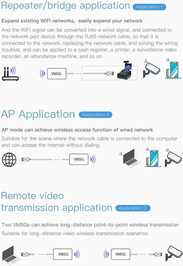 Scope of ApplicationVM5G is suitable for most devices that need to be connected to the internet, such as robots, claw machines, electronic scales, cameras and game consoles
