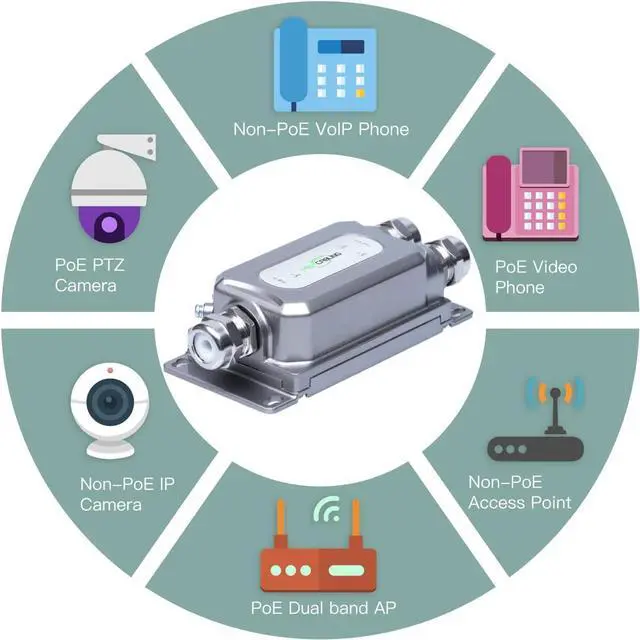 Daisy Chain PoE Network Extension up to 500m (1640 ft.), Standard cat5e or better cable is required