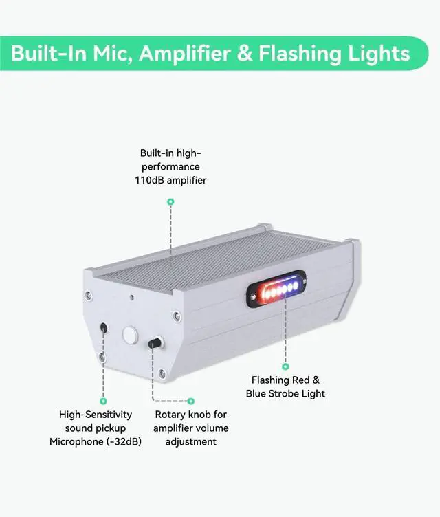 Built-in Red and Blue Strobe Lights - With 6 LEDs on each side provide strong visual warning signals.