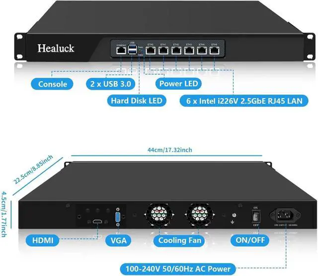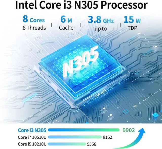 Core i3 N305 Processer: The Healuck 19 Rack PC equipped with N305 CPU, 8 cores and 8 threads, up to 3.8GHz. It offers 6MB cache and supports AES-NI. With 15W TDP, it is ideal for power-efficient systems 24/7 operation. Supporting Auto Power On, Wake-on-LAN, and PXE-Boot, GPIO