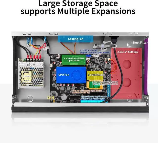 Support DDR5 RAM + Multiple Storage: Features 1 x DDR5 SO-DIMM 4800MHz RAM slot, supports up to 48GB of memory. With 1 x Mini-SATA slots for MSATA SSDs, it also offers 1 x SATA3.0 ports for 2.5 SATA SSD/HDD installation