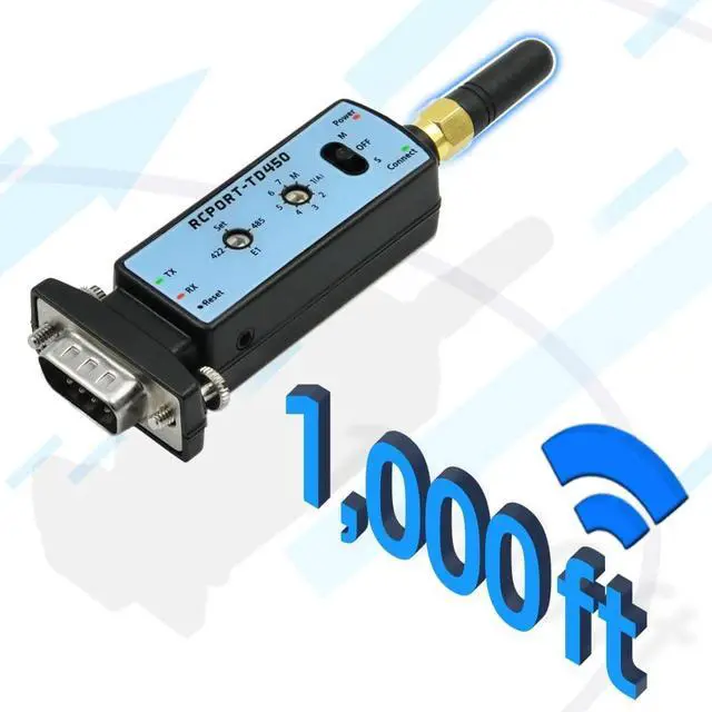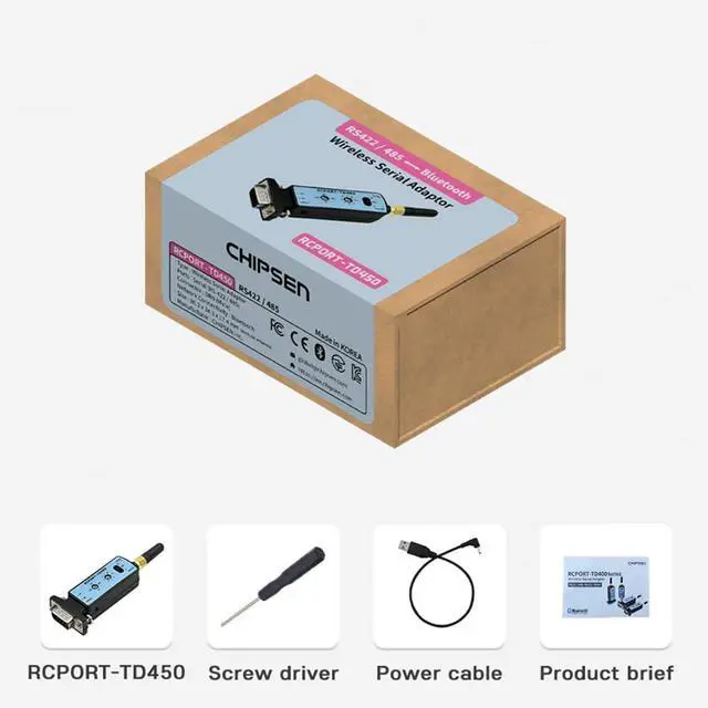 CHIPSEN RCPORT RS232 and RS422/485 Serial to Bluetooth devices use Class 1 Long Range (+20dBm) Bluetooth Modules integrated into plug-and-play devices that are quick to set up, easy to use, and provide an unobstructed range of 1000 feet with the antenna provided, or up to 4000 feet with other optional antennas. With two or more of these adapters, you can replace the serial cables used to interconnect multiple pieces of hardware with wireless Bluetooth connections. These devices provide 1:1 Auto-Pairing, 1:1 Node-Switching, and 1:7 Multi-Connection providing selectable or simultaneous communications between a Master and up to 7 Slaves. The Slaves and Master can be quickly configured and paired with the RCPORT-TD400 Manager software, included at no charge, and operate with Android, IOS, Windows and Linux. Models include RS232 to Bluetooth adapters with USB-A connectors, perfect for use with a PC, and with DSUB9 Female connectors for industrial, lab, test and manufacturing equipment. An RS422/485 to Bluetooth adapter with a DSUB9 Male connector is also available.