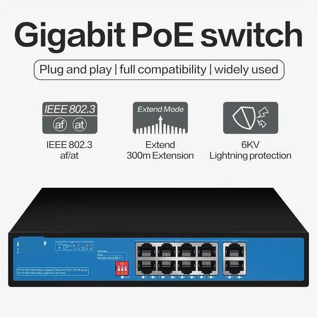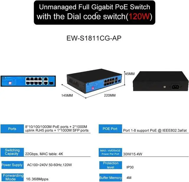 Full Gigabit POE Network Ethernet Switch, 6, 10, 11, 18, 20, 27 Ports, 1000Mbps, SFP, RJ45, IP Camera(EW-S1811CG-AP)