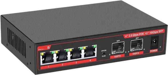 POE Switch 4 Ports 2.5G Gigabit Switch + 2 Ports 10Gbps SFP Ethernet Switch Unmanaged LAN Hub Network Switch for Wireless AP VDI(Switch with US Plug)