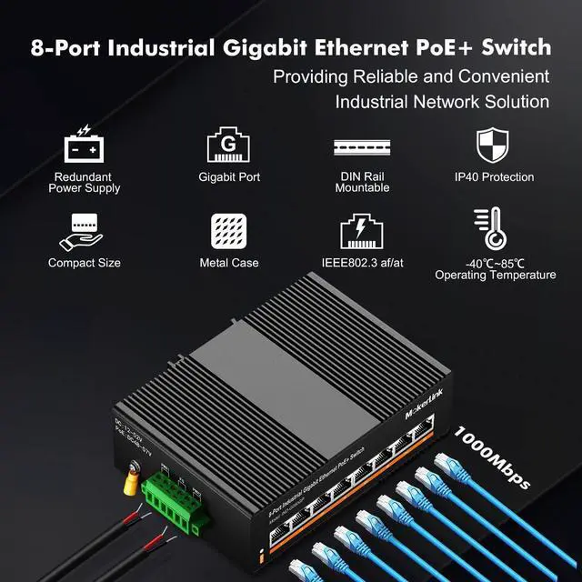 The shell is made of industrial-grade aluminum alloy, which is more sturdy, surface groove design, better heat dissipation, integrated DIN-rail mount kit, installation and disassembly are very simple