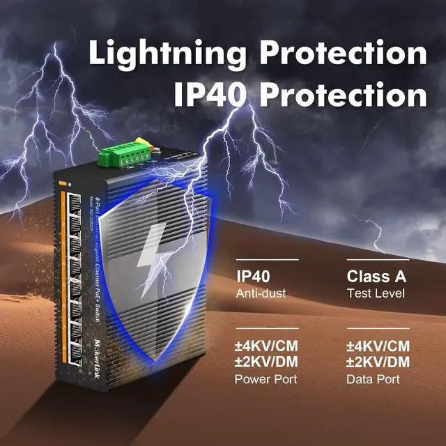 IP40 protection grade, working temperature -40~75°C(-40~185°F), super robustness, anti-lightning, anti-static and anti-overload protection, adapt to various harsh environments