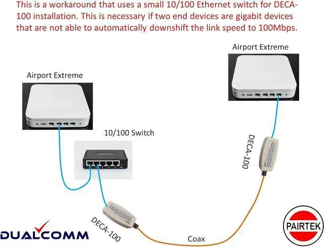 Passive adapter for Ethernet transmission over a coaxial cable. Compatible with point-to-point or home-run cabling only.