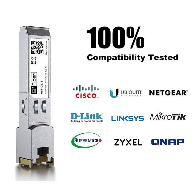Wide Compatible: Perfect for Cisco GLC-T/SFP-GE-T, Ubiquiti UniFi UF-RJ45-1G, Meraki MA-SFP-1GB-TX, Mikrotik, TP-Link, Fortinet, Supermicro, Netgear, D-Link, Broadcom, Linksys, and more open devices