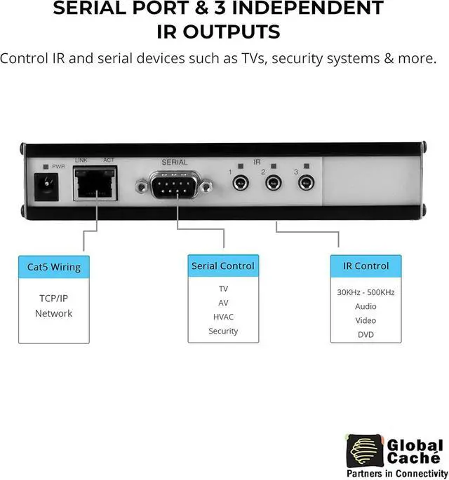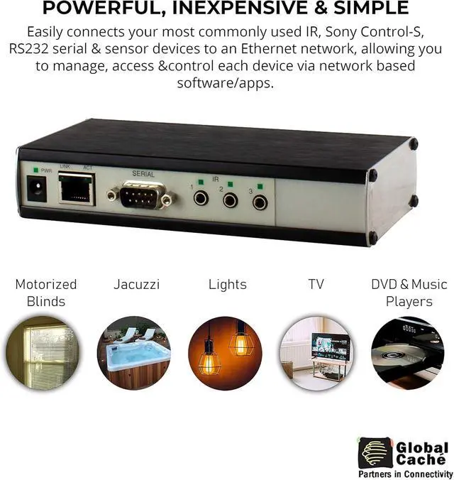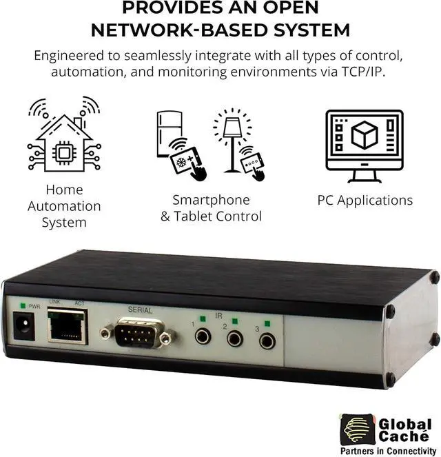 SAVES YOU TIME AND MONEY ON SERVICE - The Global Caché GC-100-06 provides an easy connection for your network-based IR, RS232 serial, and sensors.
