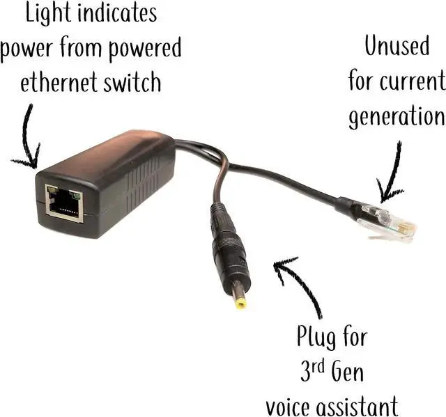 PoE - Power over Ethernet - is the perfect power solution for homes or businesses with hard wired ethernet, new construction, remodeling or where an outlet is not near your voice assistant or Nest Home Hub.