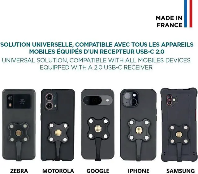 Universal compatibility with all USB-C smartphones and devices, slim 5 mm design. Made in France.