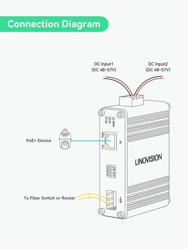 REDUNDANT POWER SUPPLY: Support 2 channel DC48V-57V redundant power inputs and auto failover, ensure high reliability networking system.