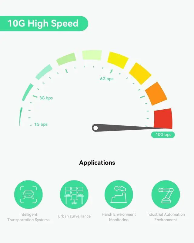 10 GIGABIT ETHERNET PORT: Provide IEEE802.3af/at 30W PoE port with 100M/1G/2.5G/5G/10Gbps. Achieve 10G speeds using Cat6a/Cat7 cables (up to 50m).