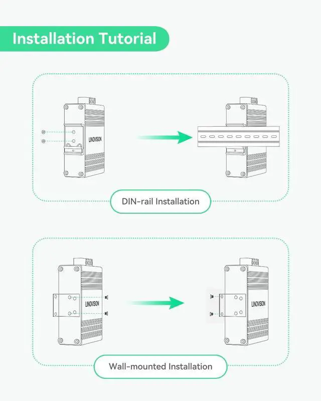 INDUSTRIAL DESIGN: Built with an IP40-rated metal case, wide Working temperatures (-40 °F to +185 °F/-40 °C to +85 °C), Support DIN-Rail & Wall Mount, 6KV surge protection, and is ideal for harsh environment.