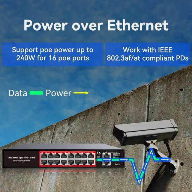 High-Power PoE+ Connectivity for All Your Devices: The STEAMEMO 16 port managed PoE switch is a powerhouse for your network. With 16*100Mbps PoE ports, each capable of delivering up to 30W, and a total PoE budget of 240W, it ensures reliable power and data transmission to all your IP devices. IEEE 802.3at PoE+ compliance guarantees high - power delivery, making it perfect for demanding devices like PoE cameras, smart home systems, and advanced IoT devices. Whether you're setting up a home office or a small business network, this switch is your ultimate solution for seamless connectivity.