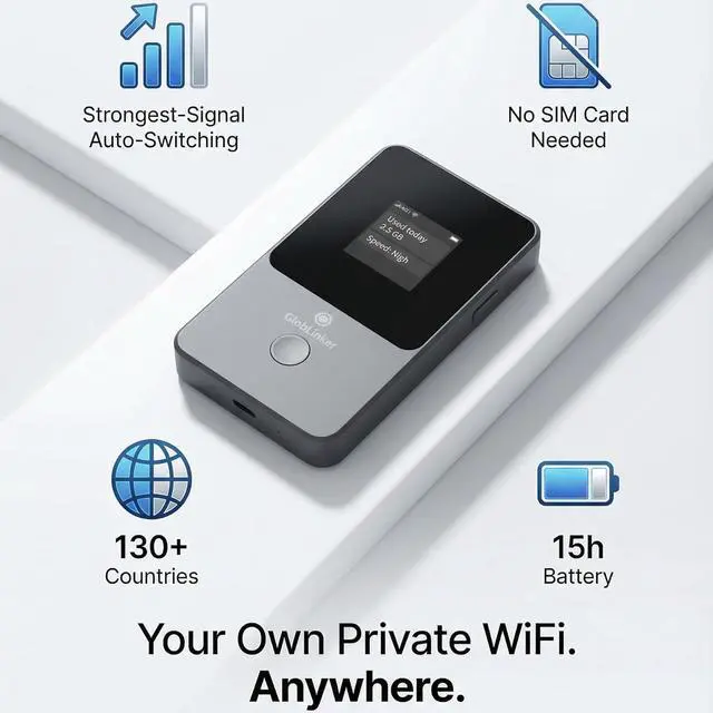 Stay connected in the USA and 130+ countries with one small, powerful hotspot. Globlinker automatically connects to the strongest local network using advanced CloudSIM technology. No contracts. No SIM Card. No roaming fees. Simply buy prepaid data, turn it on, connect your devices, and enjoy reliable internet wherever mobile signal exists.