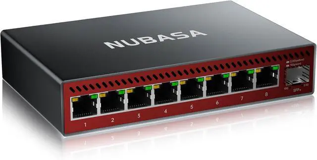 Experience faster data transfers with the NUBASA 8-port 2.5G ethernet switch, featuring eight 2.5Gbps RJ45 ports and one 10Gbps SFP+ uplink port. Ideal for high-speed connections between NAS, gaming consoles, PCs, and workstations, supporting 10/100/1000/2500Mbps auto-negotiation for seamless compatibility