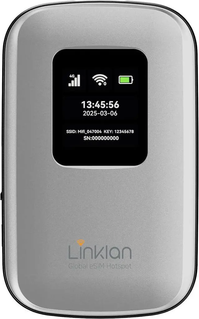 Long-Lasting Battery with Multi-Device SupportThe Linklan eSIM portable mobile MIFI is equipped with a powerful 5000mAh battery, offering over 12 hours of usage on a single charge. Fully charge it in just 5 hours overnight. Supporting up to 16 devices simultaneously, it ensures reliable, stable internet access for smartphones, tablets, laptops, and more. Perfect for camping, international business travel, or temporary office setups.