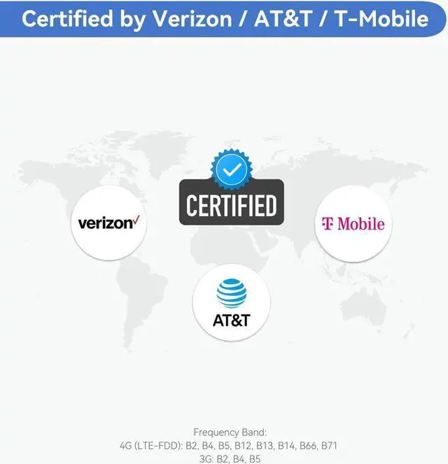 CERTIFIED BY VERIZON/AT&T/T-MOBILE - 3G/4G LTE CAT4 wireless connection, Compatible with major carriers and Certified by Verizon/AT&T/T-Mobile.