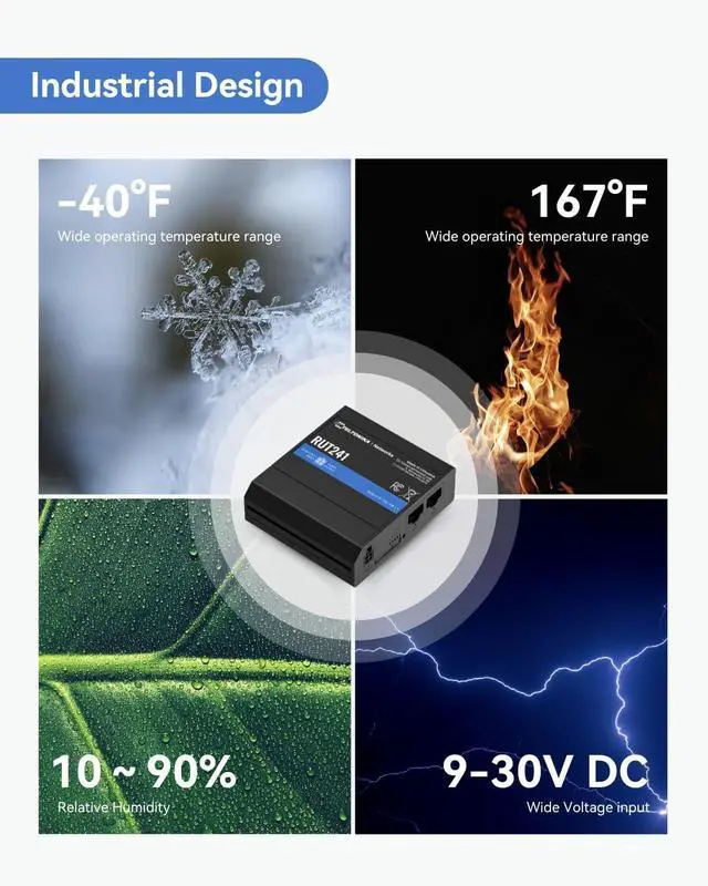UPDATED VERSION of RUT240 - RUT241 is the updated version of RUT240 that inherited its' best features, including industrial design, compact size, multiple connection interfaces, and compatibility with Networks Remote Management System(RMS).