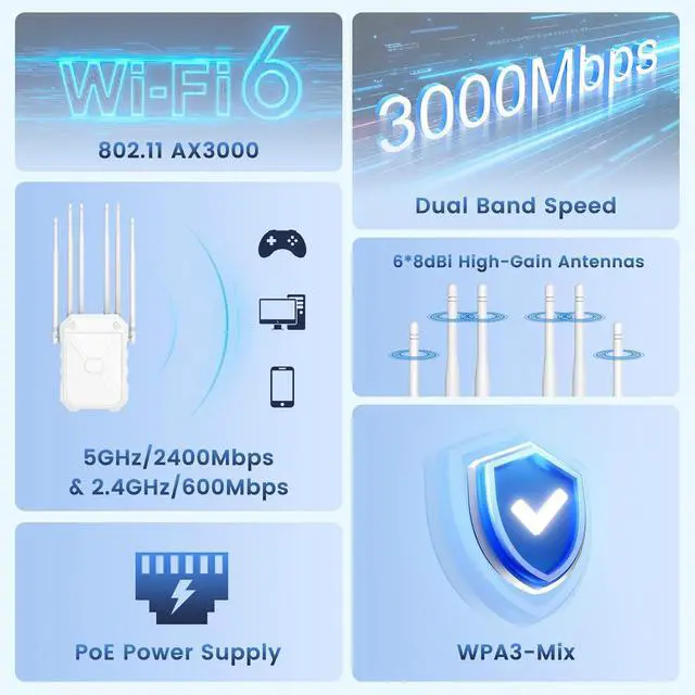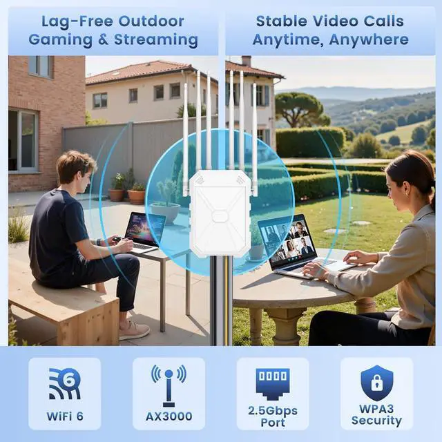 Fort Knox-Level Network Security with WPA3: Browse and stream with absolute peace of mind. Supporting the latest WPA/WPA3 and WPA-PSK/WPA3-PSK encryption protocol, this extender provides robust protection against cyber threats, safeguarding your personal data and smart home devices. It's the secure foundation for your entire outdoor network.