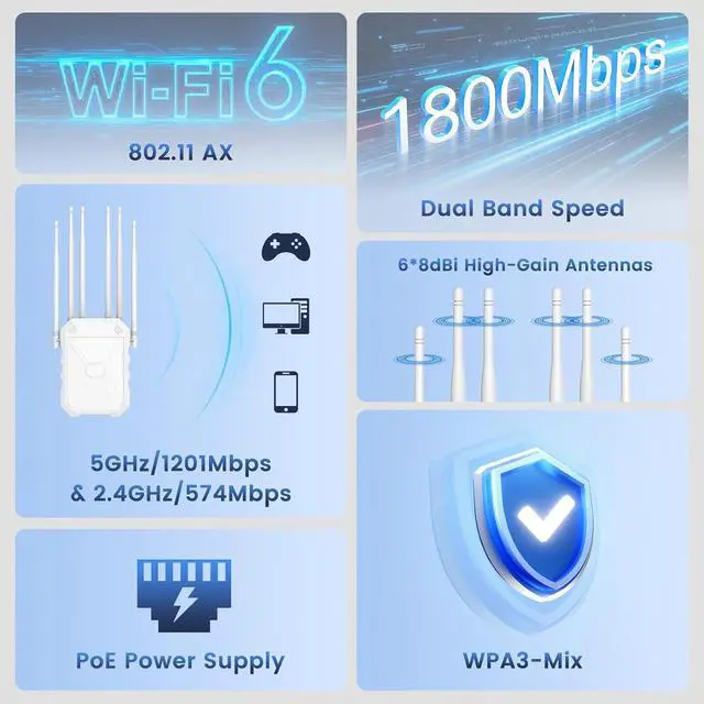 Fort Knox-Level Network Security with WPA3: Browse and stream with absolute peace of mind. Supporting the latest WPA/WPA3 and WPA-PSK/WPA3-PSK encryption protocol, this extender provides robust protection against cyber threats, safeguarding your personal data and smart home devices. It's the secure foundation for your entire outdoor network.