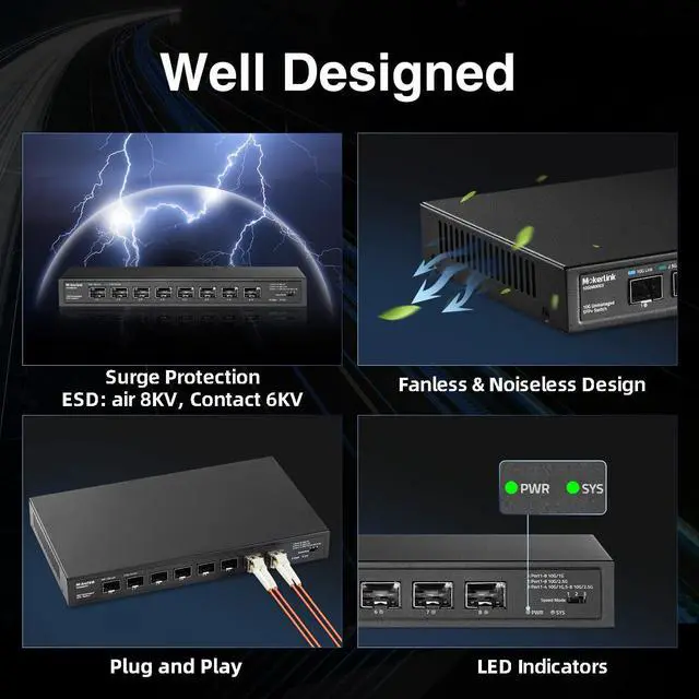 The switch has built-in mine-proof circuits,effectively reducing the impact of thunderstorms on network systems.