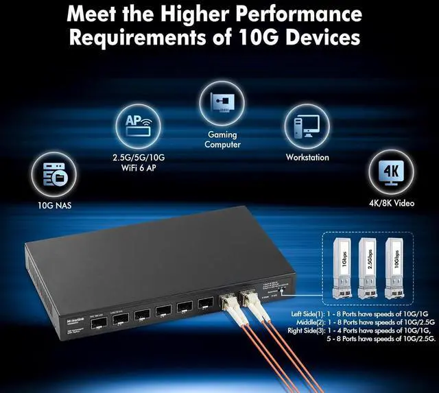 Support 4 network speeds: 10G/5G/2.5G/1G, for seamless backward compatibility.