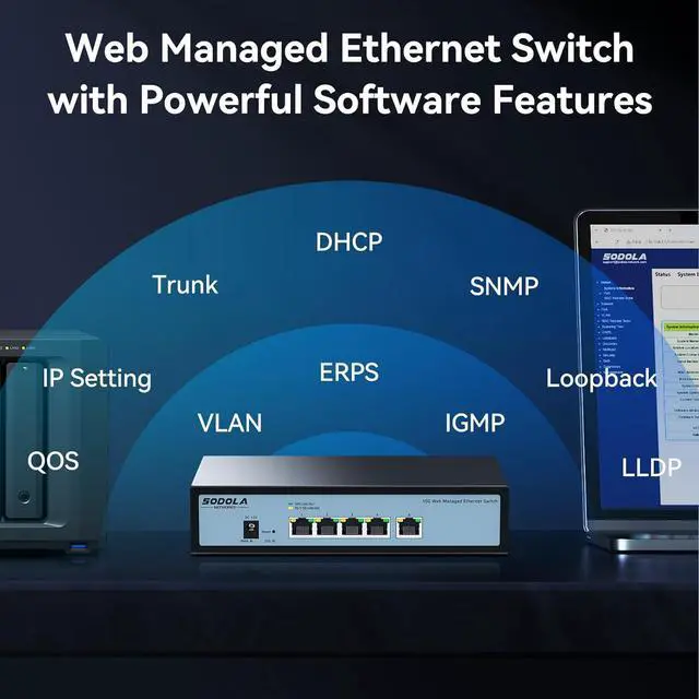 Comprehensive Managed FeaturesThis 10g switch comes with robust management capabilities, including LACP, storm control, port mirroring, VLAN management, MAC address filtering, spanning tree protocol, multicast, QoS, DHCP snooping, SNMP, RSTP and more. Ideal for enhanced network control and monitoring.(Note: Please set an IP address via IPV4 first before logging in to this switch.)