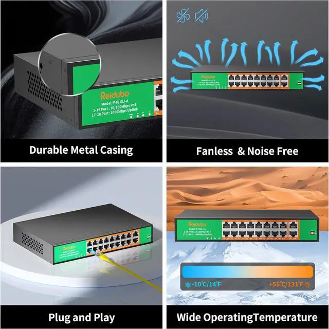 Durable & Wide ApplicationsCompact metal housing with fanless design for silent operation and efficient heat dissipation. Ideal for IP surveillance, wireless networks, offices, and homes.We offer a 1-year warranty and lifetime tech support.