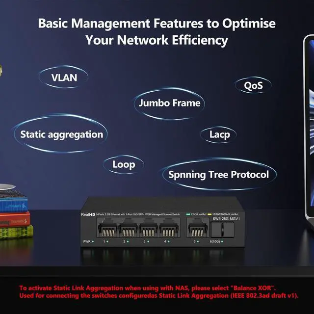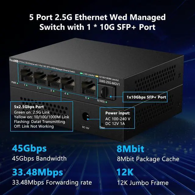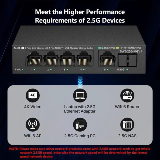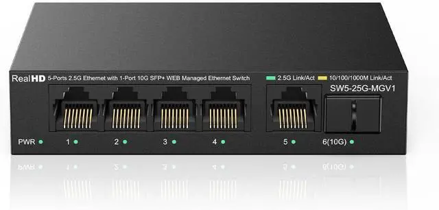 Real HD 2.5 Gigabit Managed Switch Features 5 x 2.5Gb Base-T Ports and 1 x 10Gb SFP+ Ports