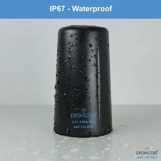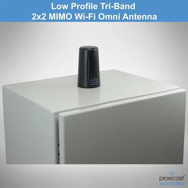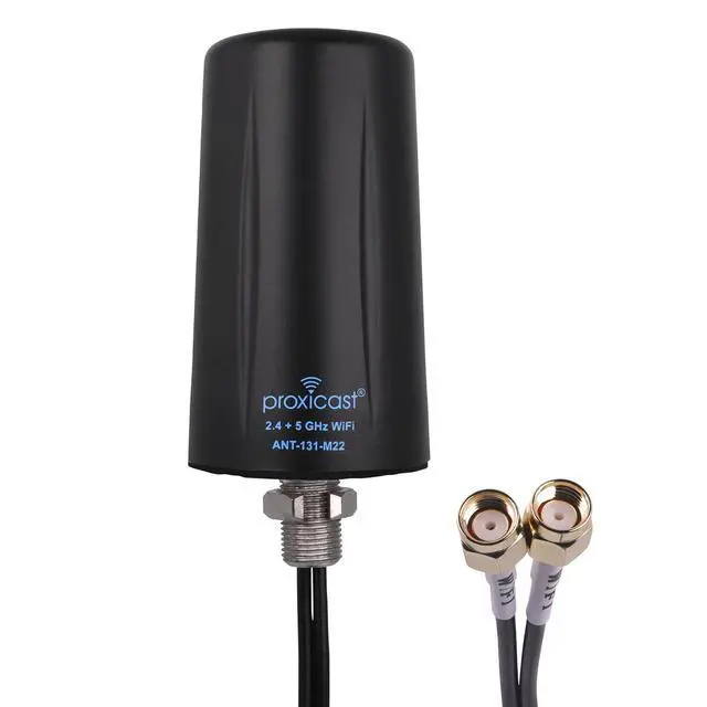 Frequency Range2.4, 5.8 & 6 GHz WiFi Frequency BandsPeak Gain5 dBiImpedance50 OhmVSWR< 2:1PolarizationVerticalConnectors2x Reverse Polarity SMA Male Plugs (RP-SMA)Coax Length10 ft (3 m) Low-Loss RG174 Paired CoaxMountingScrew Mounted via a 1/2 in. (13 mm) Hole with Locking Internal NutGround Plane8" diameter min recommendedDimensionsHeight 3.2 in. (82mm); Diameter 1.9 in. (48 mm)Weight4.2 oz (119 g)MaterialsABS Plastic (black) + Nickel-Plated Brass + Foam Adhesive PadOperating Temperature-40°C to +70°CFull Specification SheetDownload PDF under the Product Guides and Documents section of this listingSupportFree US-based SupportModel NumberANT-131-M22 Inventory Levels