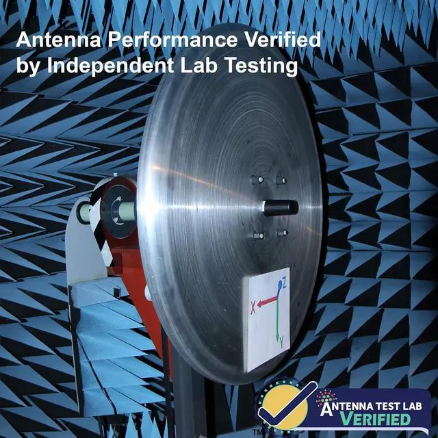 Permanently mounts via a 1/2 in. (13 mm) hole with locking internal nut. Resists vandalism with no exposed coax cable, high impact ABS radome shell and an extra thick threaded screw mounting post. Includes 10 ft of low-loss RG174 paired coax fed through center mounting post. Includes "L" bracket for optional wall mounting.