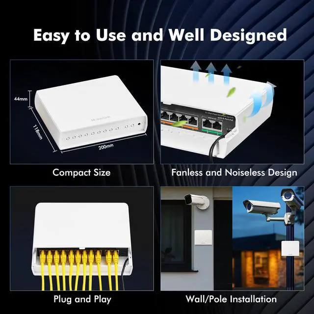 The outdoor PoE switch is easy to install using included tools. Support holding pole installation and wall installation.
