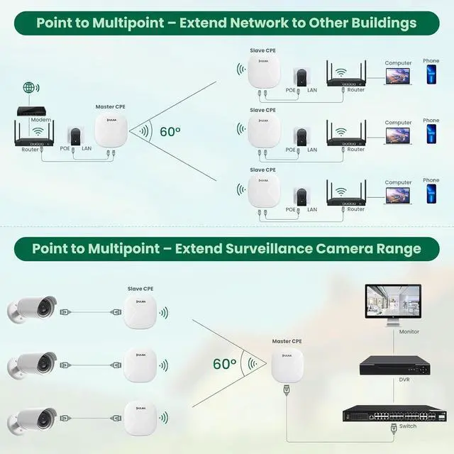 Wireless Security: Wireless bridge point to point outdoor is built with advanced security protocols, including WPA-PSK/WPA2-PSK/WPA/WPA2; Avoid unauthorized access and information leakage; Protect sensitive data and ensure your network security