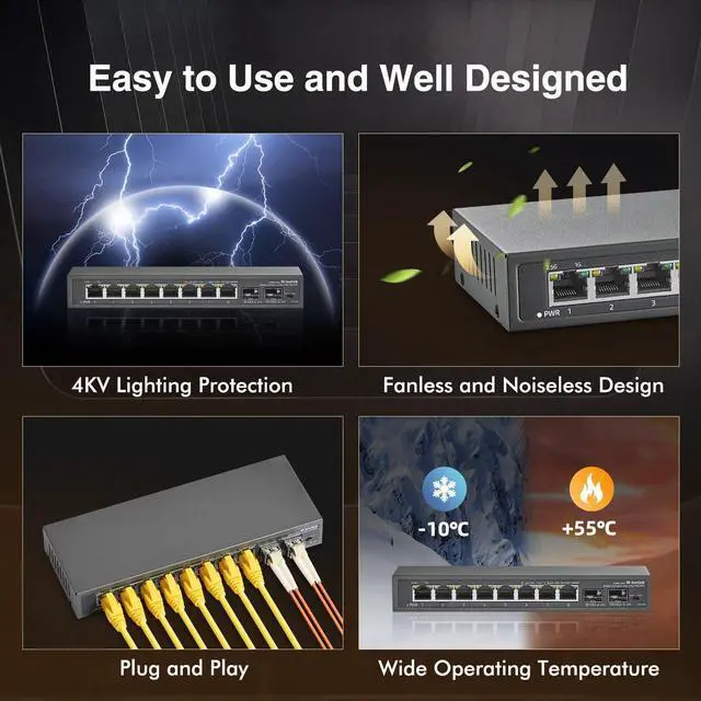 Easy to Use: Unmanaged Plug and Play, just plug in the power cord, connect the ethernet cable directly to the device, auto MDI/MDIX, auto-negotiation rate, without any configuration.