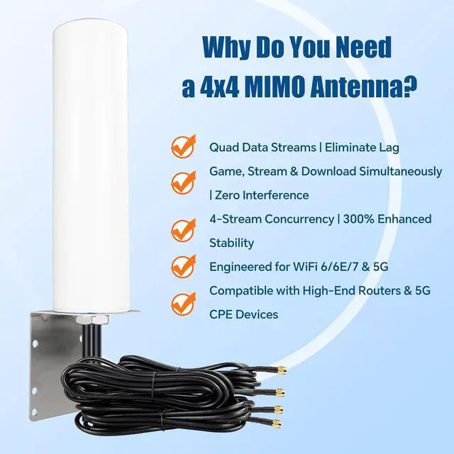 Universal High-End Device SupportDesigned for compatibility with 4x4 MIMO-enabled routers, 4G 5G gateways (including T-Mobile Home Internet, Verizon 5G Home), and enterprise-grade access points. Additional includes a standard SMA to TS9 connector for enhanced compatibility with a wider range of devices.