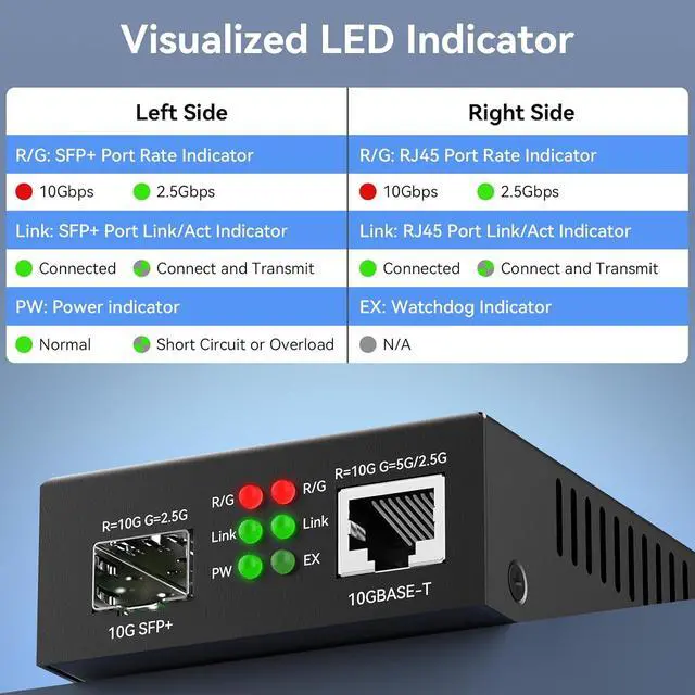 10GbE SFP+ Media ConverterInstantly converts 10GBase-T RJ45 SFP+ fiber signals for long-haul runs (3KM-100KM). CRITICAL: Requires matching SFP+ modules at BOTH ENDS (sold separately). Supports Single/Dual-mode & Single/Dual-fiber.(Optical/electrical modules NOT included with converter)