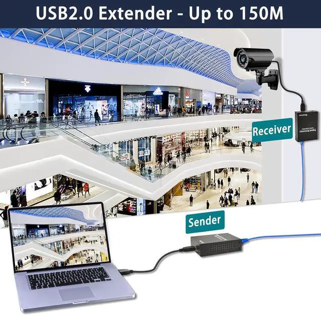 Extend USB 2.0 Up to 492 ft (150 m) Transmit USB 2.0 signals over a single Cat6/Cat6e/Cat7 Ethernet cable with zero signal loss or lag. Perfect for remote workstations, security cameras, and industrial control stations.