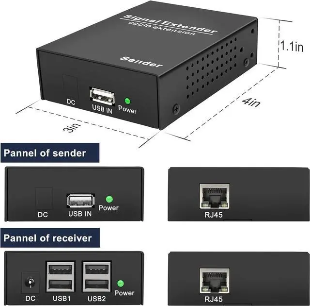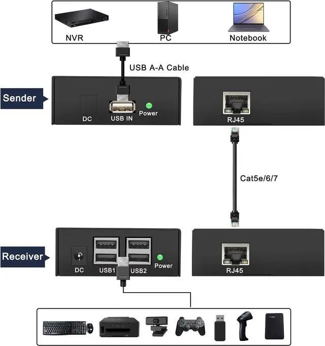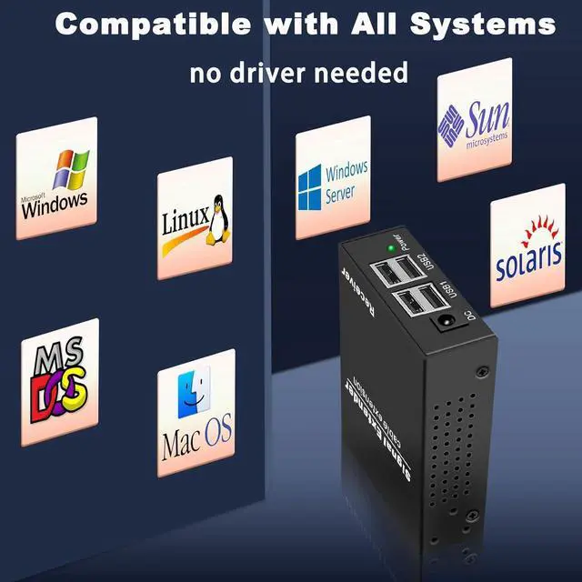 4-Port USB Hub on Receiver Receiver unit provides four standard USB 2.0 portsconnect keyboards, mice, webcams, flash drives, printers, or other peripherals simultaneously.