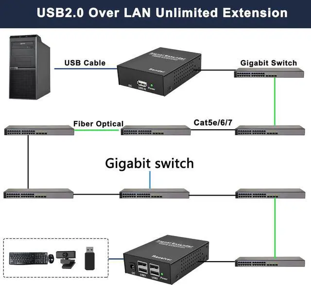 Works with Gigabit LAN Infrastructure Seamlessly integrate with existing Gigabit Ethernet switches . Leverage your network for high-speed, stable USB extension across offices or classrooms.
