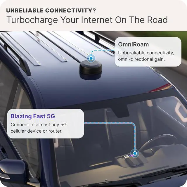 ON-THE-ROAD CONNECTIVITY: Stay connected in the most remote areas with OmniRoam, the ultimate mobile antenna designed for cars, SUVs, vans, and semis. Perfect for road trips, fleet expansion, mobile businesses, off-grid adventures, and long-haul trucks.