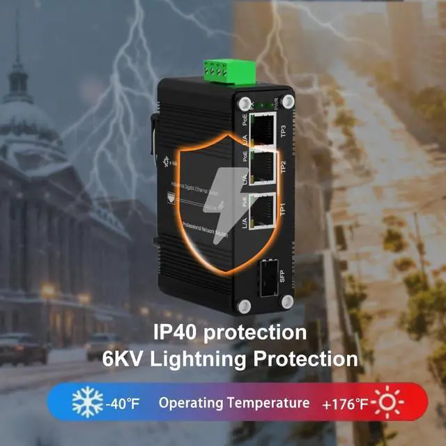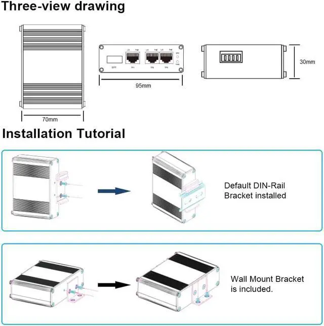 Port ConfigurationEquipped with 3 10/100/1000Base-T RJ45 ports with 100/1000M Auto Adaptive SFP Slot.Highly compatible, can be compatible with low-end devices.