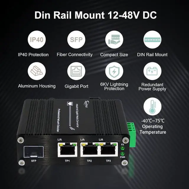 Small size, easy to carry.Supports DIN-Rail & Wall-mount installation, Stable operation in extreme climates(-40~75).