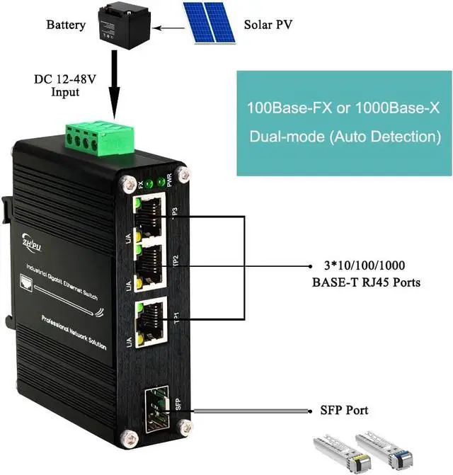 , :The switch has a boost function, overload current protection. 2 power inputs, can be switched in case of failure.