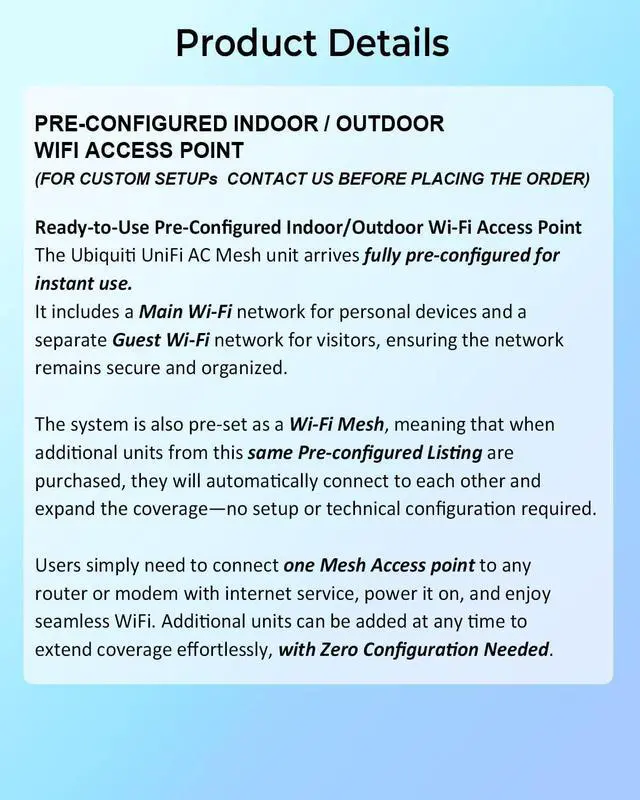 Pre-configured Set: Effortlessly set up a powerful Wi-Fi mesh network with the Ubiquiti UniFi AC Mesh UAP-AC-M US, offering a hassle-free and seamless installation experience.