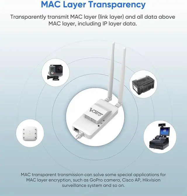 8. Supports IP layer transparent transmission and MAC layer transparent transmission.